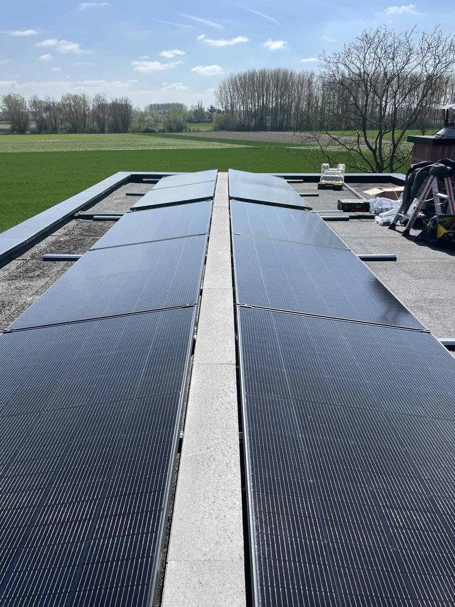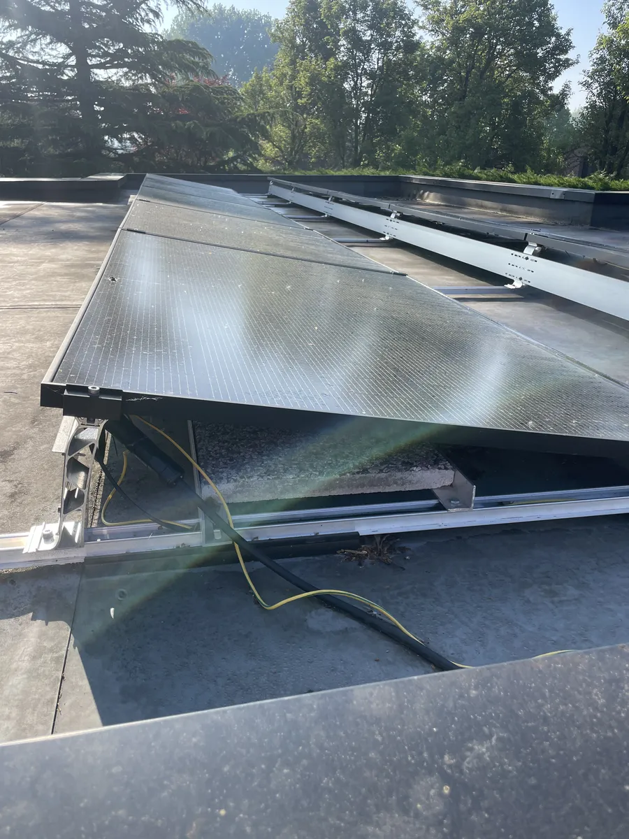 - Pose de panneaux photovoltaïques en lestage et pan incliné